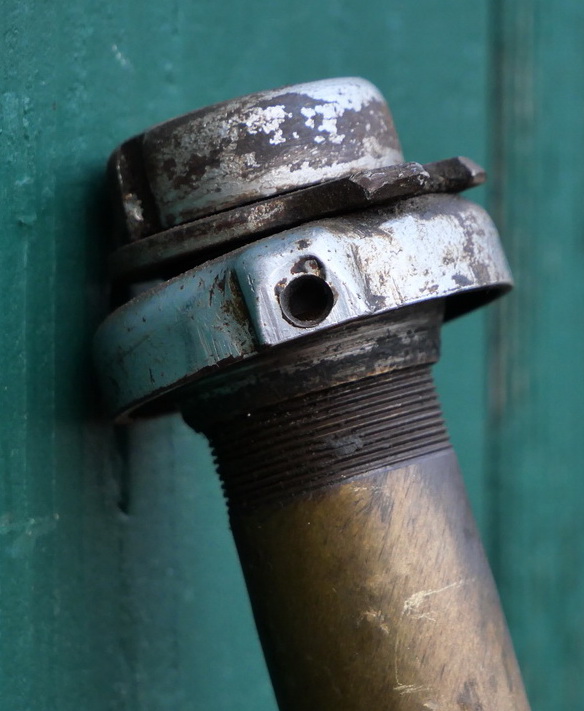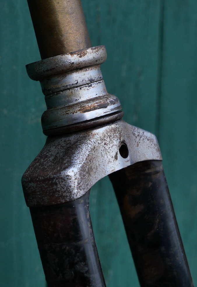 Fahrradgabel 26 Zoll OPEL, schwarz, für Ballonrad 30er J., inkl. orig. Steuersatz verchromt, Schaftlänge 235 mm, Durchlaufhöhe 360 mm/26 x 2.00, gebraucht, überstrichen, Zustand gemäß Fotos