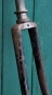 Fahrradgabel 28 Zoll DÜRKOPP, schwarz, Linien silber, für Tourenrad 30er/40er J., inkl. orig. Steuersatz verchromt, Schaftlänge 170 mm, Durchlaufhöhe 385 mm, gebraucht mit Patina, Zustand gemäß Fotos