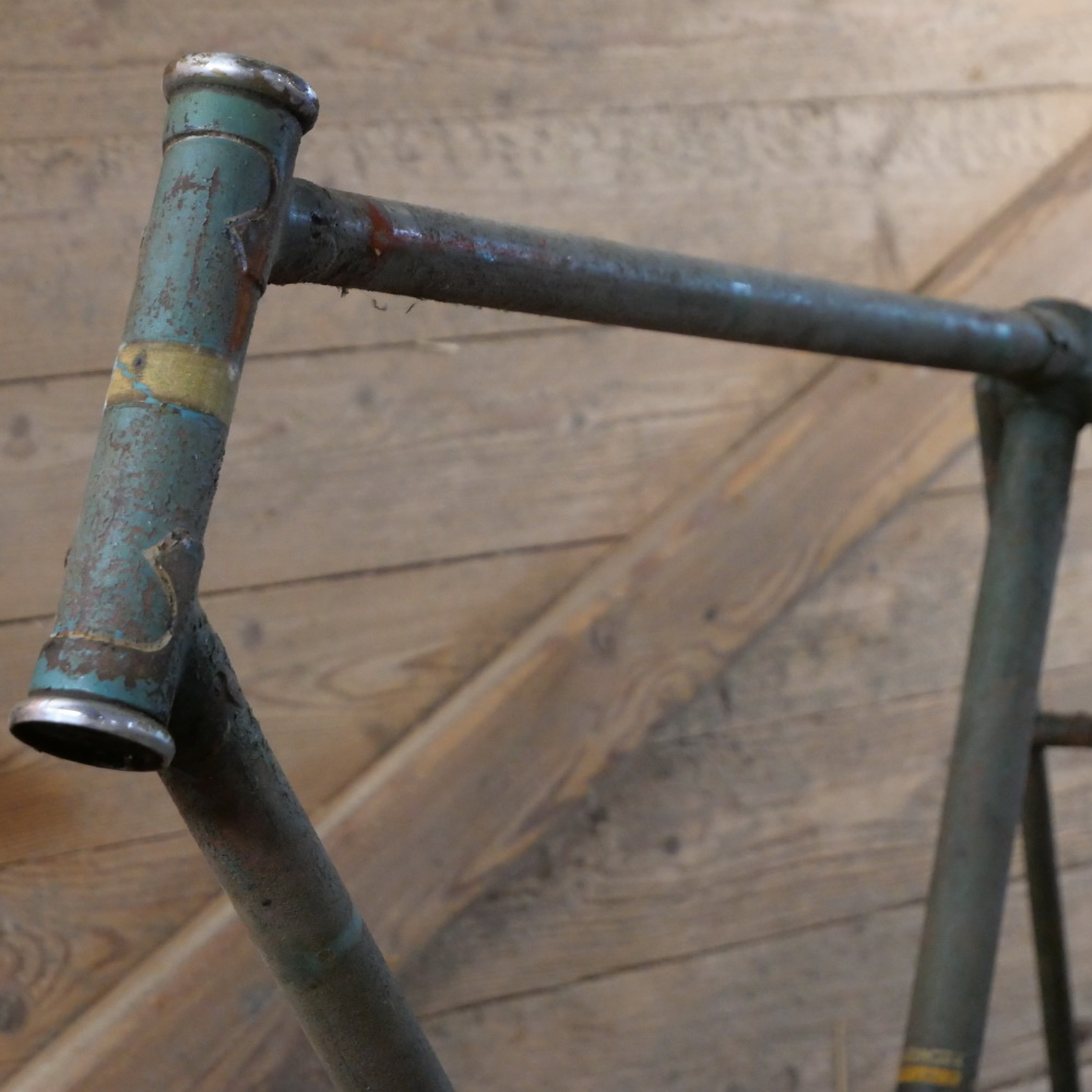Fahrradrahmen, 28 Zoll, Herrenausführung für Sportrad, 1930er Jahre, für BSA Innenlager: Durchmesser 35mm, Breite 68mm, Rahmenhöhe 57,5 cm, Rahmennummer 1055XXX, Gebraucht mit Patina, ohne Gabel, Steurrohrlänge: 165mm, Speichenschloss ohne Schlüssel, Zustand gemäß Fotos