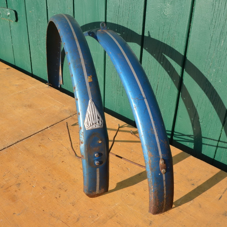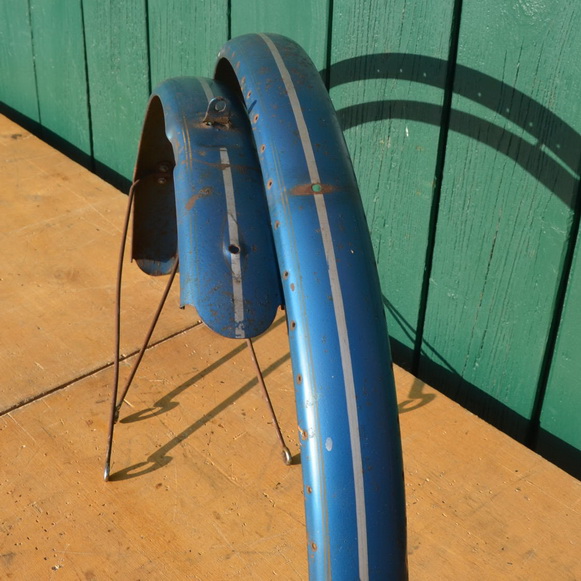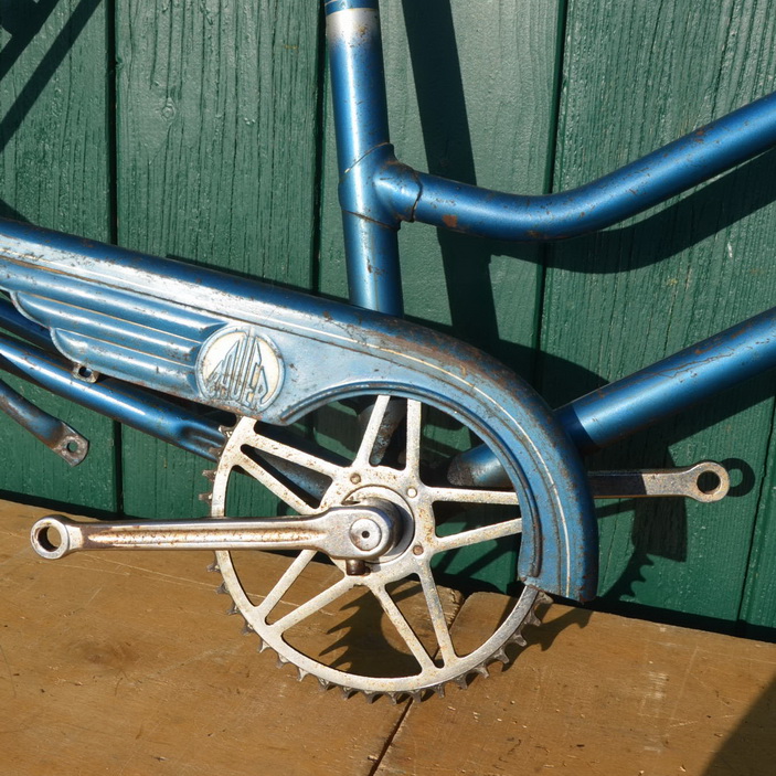 Fahrradrahmen "Bauer Sport" blau metallic mit Gepäckträger und Schutzblechsatz, Rahmenhöhe 55 cm, Rahmennummer 1682XXX, mit Tretlager und Kettenschutz, 26 Zoll, 50er Jahre
