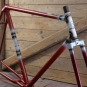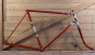 Fahrradrahmen DÜRKOPP, 26 Zoll, Herrenausführung für Sportrad, 50er/60er J., orangerot/weiß/ schwarz, Linien gold, Rahmenhöhe 55,5 cm, Oberrohrlänge 59 cm, Einbaubreite 108 mm, Rahmennummer 2201XXX, Tretlager BSA-Muffe 34/66 mm, alte Neuware mit schöner Patina, Gabel noch ohne Gewinde! Farbton etwas dunkler als Rahmen, Zustand gemäß Fotos