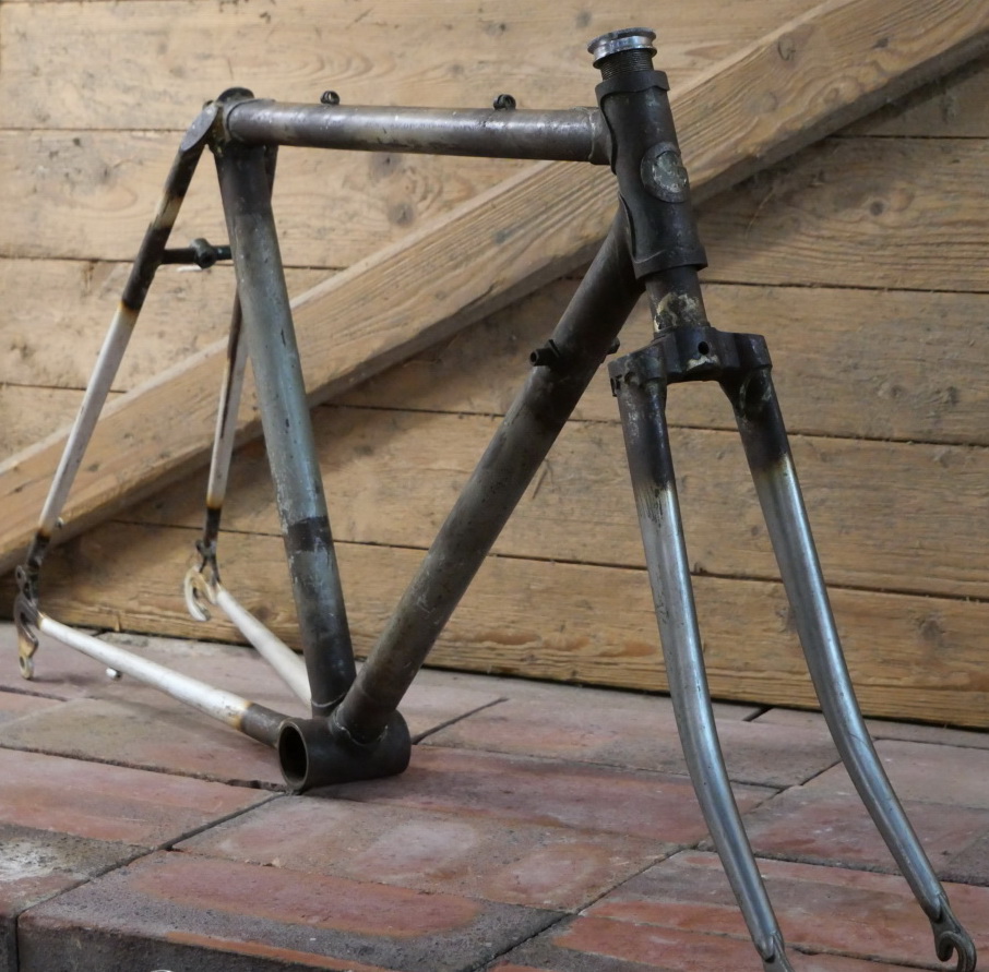 Fahrradrahmen/Frameset BAMBI-RAD, Stahl, Herrenausführung für Ballon-Rennrad 16 Zoll, 50er/60er J., Rahmenhöhe 39 cm, Einbaumaß ca. 123 mm, für BSA-Lager, handgefertigt ohne Finish, Lötstellen noch unbearbeitet, alte Neuware, Zustand gemäß Fotos. Die sog. BAMBI Renner waren Kinder/Jugendrennräder, speziell für BAMBI Rundkurs Rennen, die in vielen größeren Städten durchgeführt wurden. Rennomierte damalige Rahmenbauer bauten diese Spezialrenner..