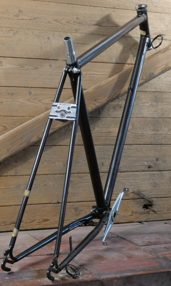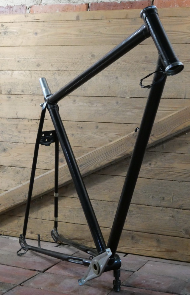 Fahrradrahmen Herrenausführung für Tourenrad, 28 Zoll, 80er/90er J., antrazit-metallic, Rahmenhöhe 54,5 cm, Einbaumaß ca. 118 mm, für BSA-Lager (1.370 X 24), Steuerrohr für 1 Zoll/140mm lang, alte Neuware mit leichter Lagerpatina, Zustand gemäß Fotos