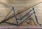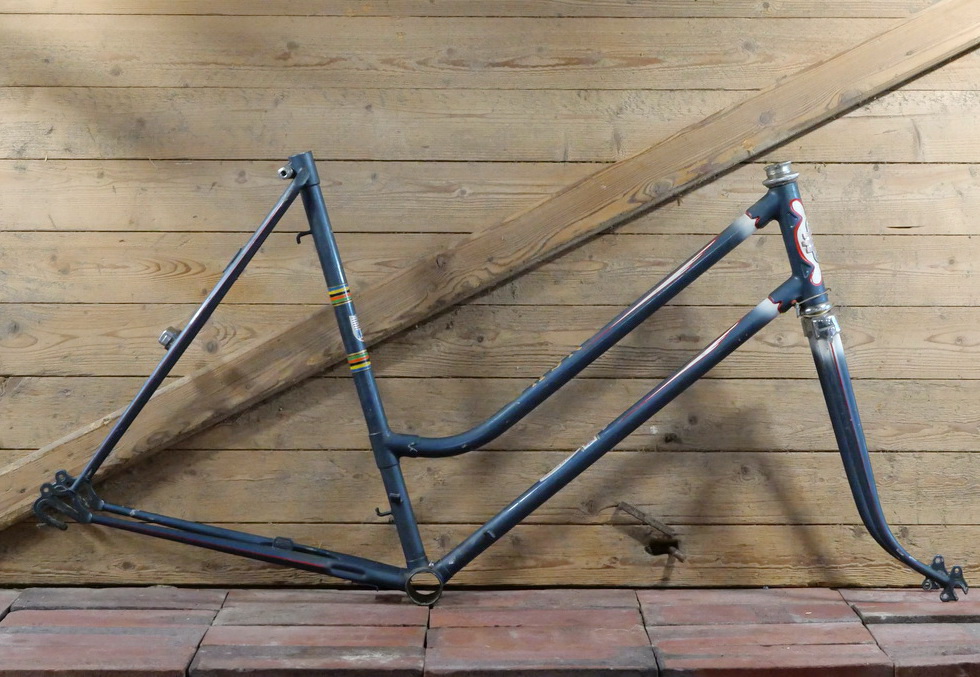 Fahrradrahmen NSU, Damenausführung für Sportrad, 26 Zoll, 1950er/60er Jahre, taubenblau/rot/weiß, gebr.