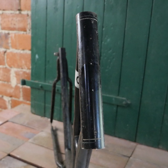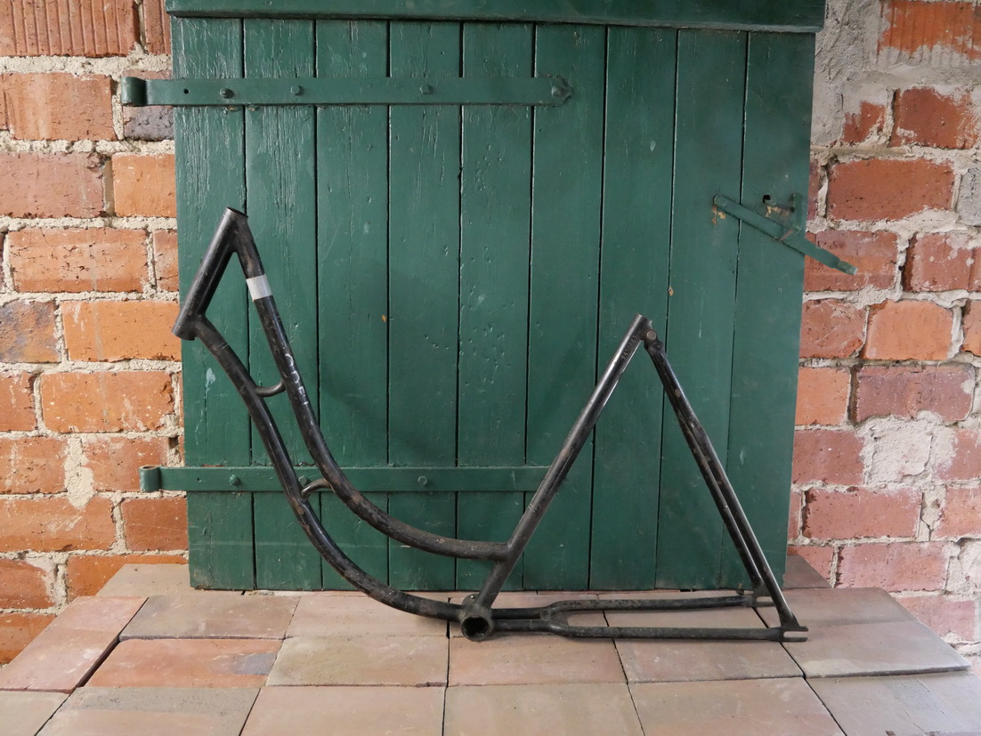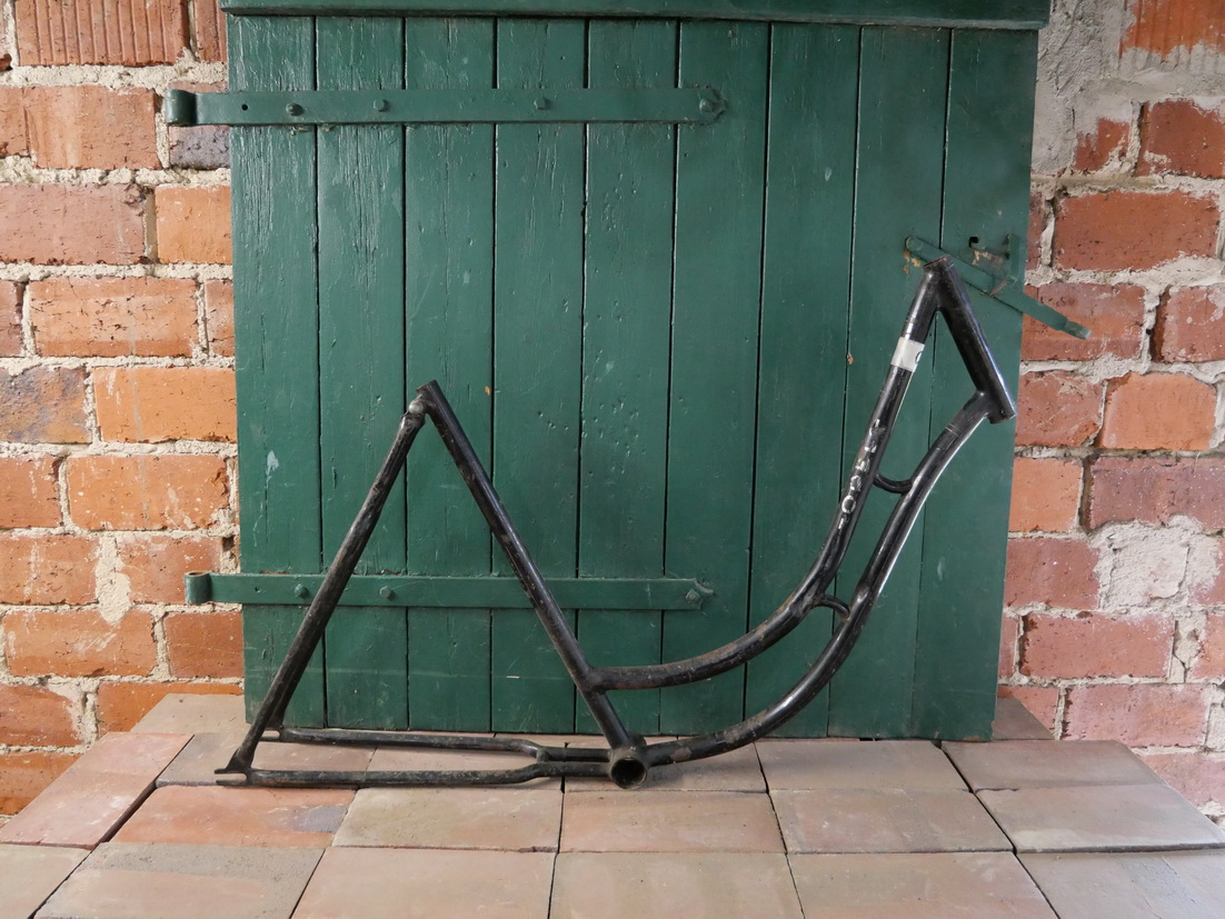 Fahrradrahmen "Opel" 26 Zoll, Damenausführung, Rahmenhöhe 54 cm, Rahmennummer 4230XXX, Originallack, partiell verdellt, Nachlöten am untern Mittelsteg erforderlich
