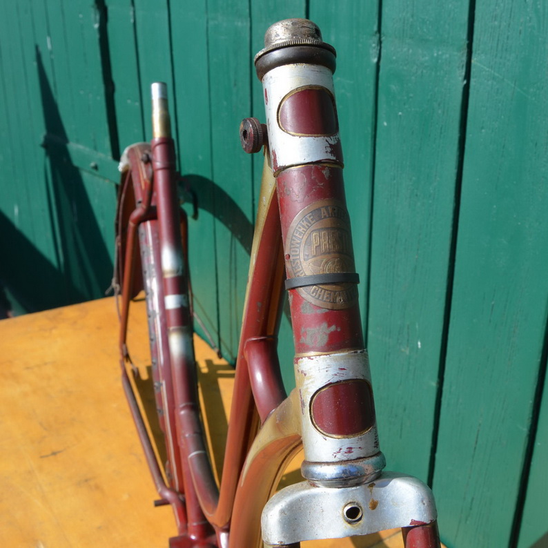 Fahrradrahmen 1EPresto 1C Damenausführung, 28 Zoll, Linierung gold/weiß mit Strahlenkopf, Rahmenhöhe 54 cm, Rahmennummer 775XXX