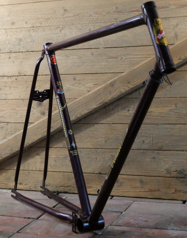 Fahrradrahmen VENDEL, Herren, für Hollandrad, 28 Zoll, Stahl, 80er J., weinrot-metallic, Rahmenhöhe 59 cm, Einbaumaß 115 mm, für Thompson-Lager Durchmesser 40 mm, Steuerkopf 170 mm/1 Zoll, leicht gebraucht, Zustand gemäß Fotos