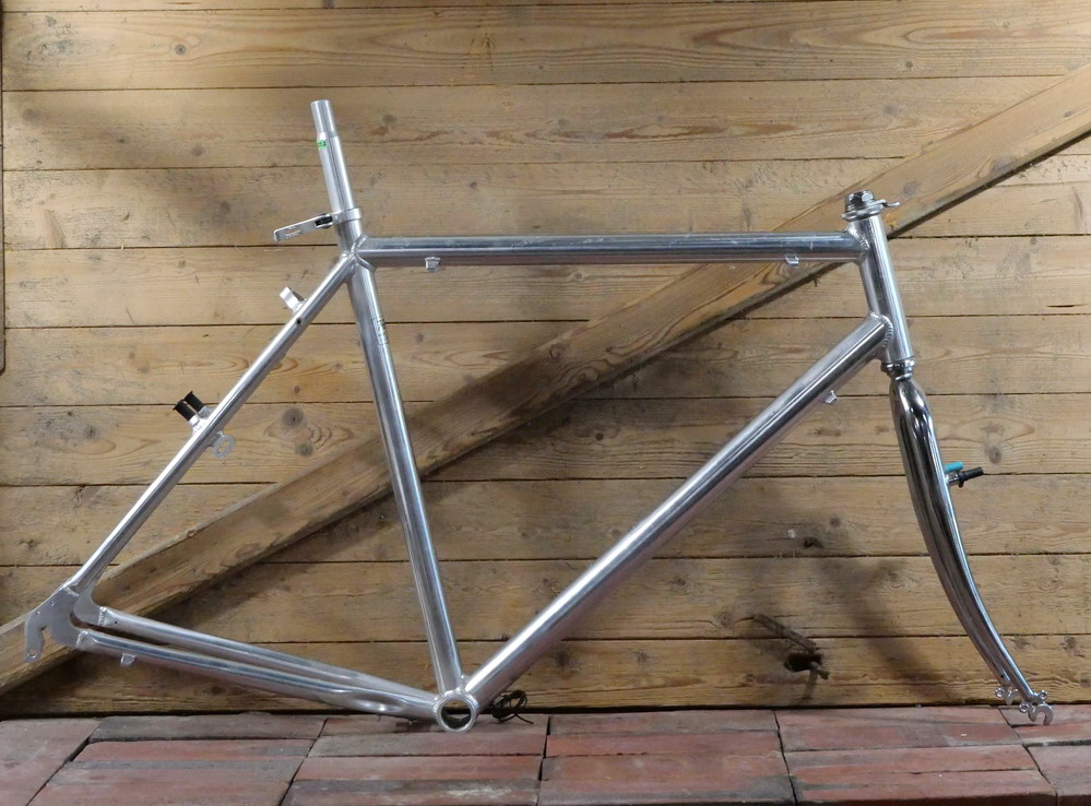 Fahrradrahmen aus Alu, Herrenausführung für Treckingrad, 28 Zoll, Ende 1990er Jahre, poliert, Stahlgabel, gebr.