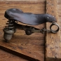 Sattel, Herren, CARL VOM FELD #8400, Leder braun, Gestell vernickelt, 20er/30er J., Breite ca. 19 cm, Länge ca. 27 cm, gebraucht mit Patina, Zustand gemäß Bildern