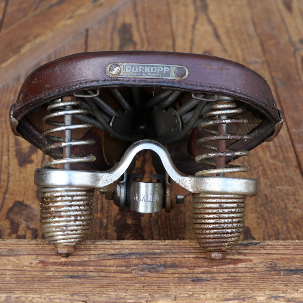 Sattel, Herren, DÜRKOPP/WITTKOP, Leder, braun, verchromt, original 50er Jahre, Breite ca. 21 cm, Länge ca. 25 cm, gebraucht mit Patina, Zustand gemäß Bildern