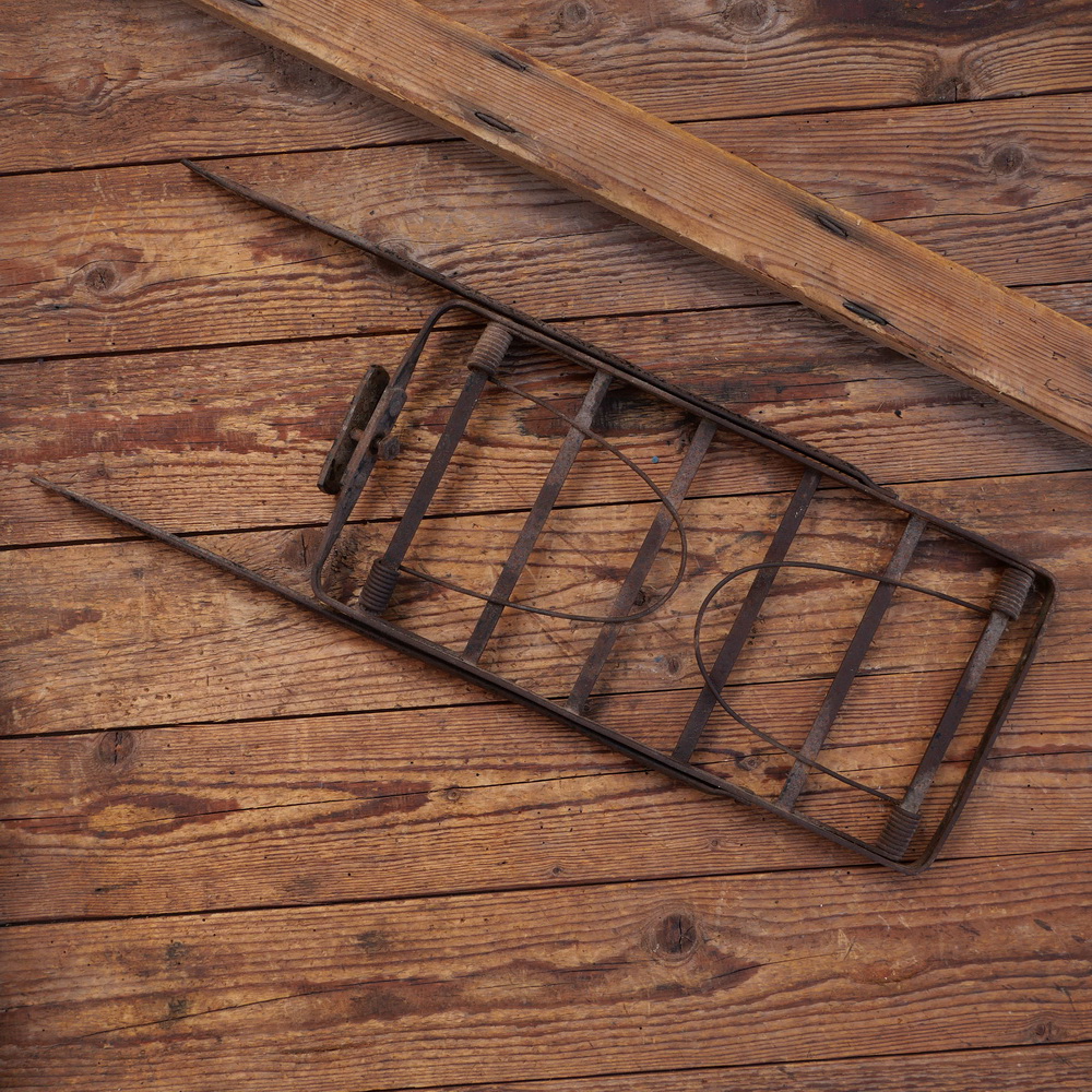 Gepäckträger,Bandeisen, mit zwei Federklappen, ca. 37 x 18cm, orig. 30er Jahre, gebr., passend für 26/28er Fahrräder