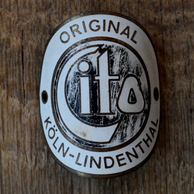 Steuerkopfschild CITO, 30er Jahre, Originalschild aus Sammlungsbestand, Lochabstand 32 mm Ideal für den passenden Fahrradoldtimer oder die Sammlervitrine. Zustand siehe Bild. Übrigens: Wir haben noch eine Riesenmenge weiterer Steuerkopfschilder und Schutzblechembleme im Bestand, die wir niemals alle listen können. Fragt einfach an, wenn Ihr auf der Suche nach einem speziellen Schild oder Emblem seid, vielleicht können wir helfen.