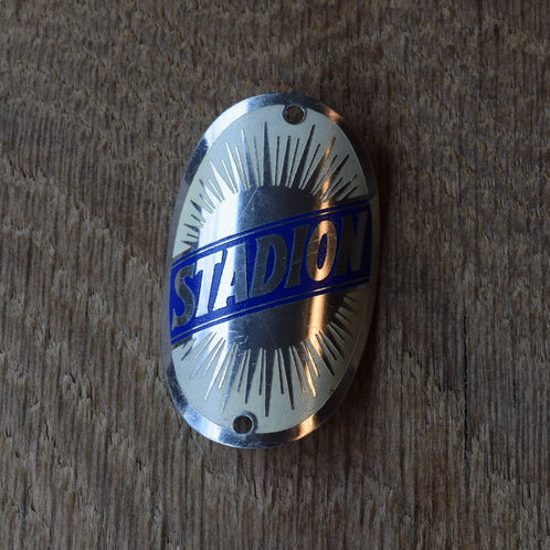 Steuerkopfschild Stadion, 50er Jahre, Originalschild aus Sammlungsbestand, Lochabstand 45 mm Ideal für den passenden Fahrradoldtimer oder die Sammlervitrine. Zustand siehe Bild. Übrigens: Wir haben noch eine Riesenmenge weiterer Steuerkopfschilder und Schutzblechembleme im Bestand, die wir niemals alle listen können. Fragt einfach an, wenn Ihr auf der Suche nach einem speziellen Schild oder Emblem seid, vielleicht können wir helfen.