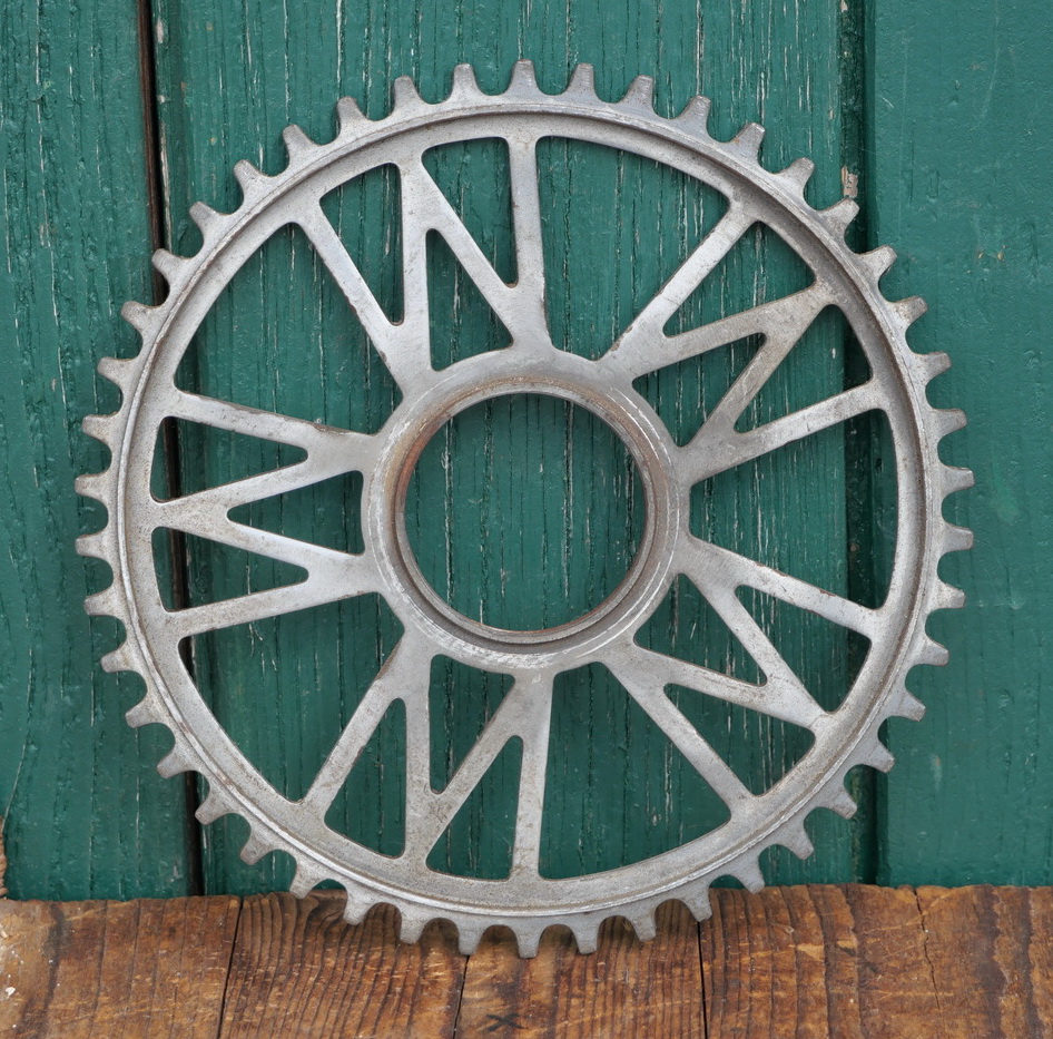 Kettenblatt WITTLER, 30er-50er J., 1/2 Zoll, verchromt, 46 Zähne, Gewinde-Aufnahme mit Durchmesser 51mm, leicht gebraucht mit schöner Patina, Zustand siehe Fotos