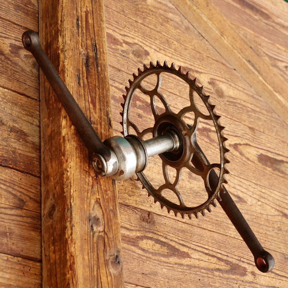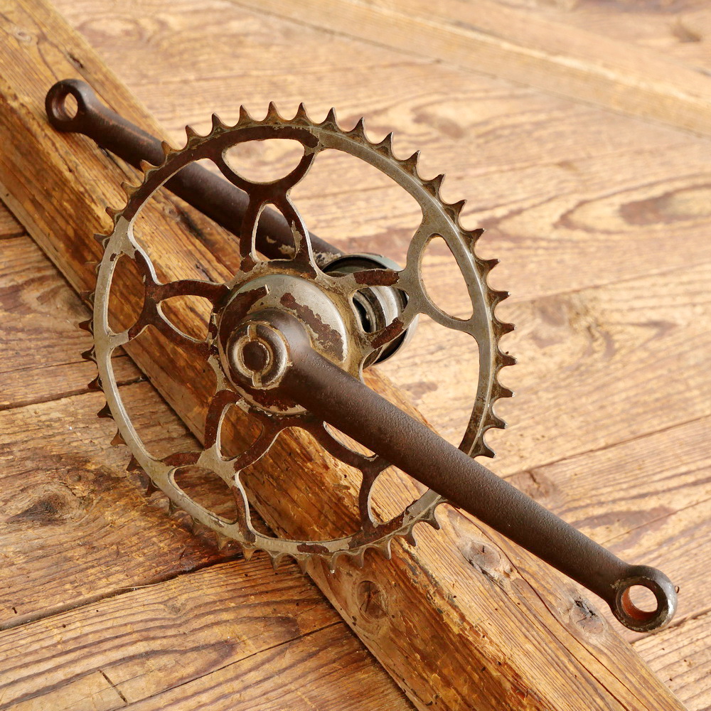 Tretlager WANDERER, für Tourenrad, orig. 30er J., verchromt, Glockenlager, Kettenblatt 46 Zähne, Kurbellänge 175 mm, Durchmesser Lagerschalen 42 mm, mit komplettem, funktionstüchtigen Innenlager, gebraucht, Zustand siehe Bilder.
