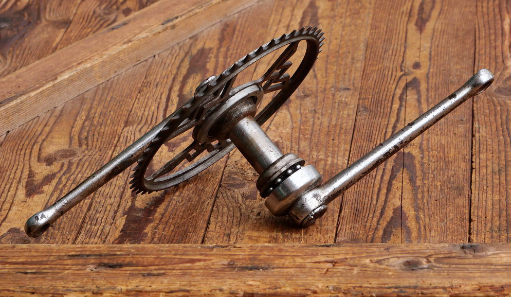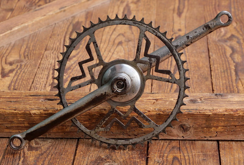 Tretlager WANDERER für Tourenrad, orig. 30er J., verchromt, Glockenlager, Kettenblatt 48 Zähne, Kurbellänge 175 mm, inkl. komplettem Lager, Schalendurchmesser 41,5mm, gebraucht, Lager o.k, Zustand siehe Bilder.