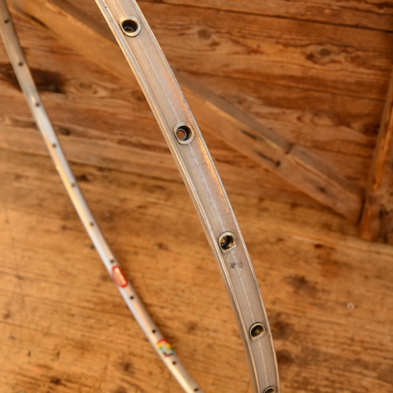 Felge für Schlauchreifen "Super Champion Competition" 28 Zoll, Breite 20,5 mm, Lochzahl 28, Nippelbohrung 4,2 mm geöst. Oberfläche Alu, Zustand: Alte Neuware mit Lagerpatina (auspolierbar)