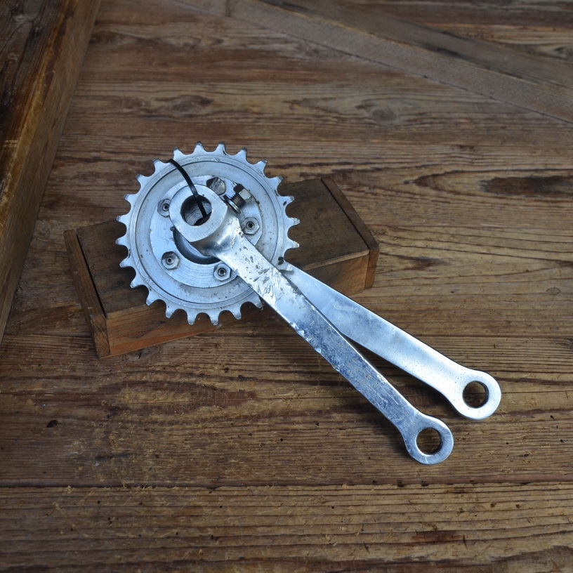 Kurbelgarnitur Keilausf., orig. 50er Jahre, verchromt, gebraucht mit alterstypischen Gebrauchsspuren, siehe Bilder. Kurbellänge: 170 mm. Rares Originalteil für den passenden Klassiker! , Hinweis zum Zustand: Die Tretlager sind unrestauriert, in der Substanz aber ok. Optik und Zustand der Zähne, siehe Bilder. Die Konen und Lager müssen, soweit überhaupt dabei und je nach Anspruch an den technischen Zustand, ggf. überholt/ergänzt oder ausgetauscht werden. Ersatzteile können wir für viele Typen gegen Berechnung liefern.
