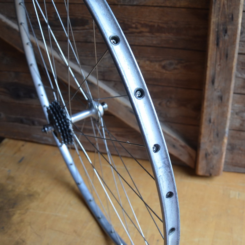 Hinterrad 28 Zoll, 4-fach, Hohlkammerfelge Alu poliert, 32-Loch