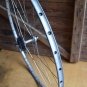 Hinterrad 28 Zoll, 4-fach, Hohlkammerfelge Alu poliert, geöst, (f. Schlauchreifen) 32-Loch, Breite 22 mm, Ventilloch 6 mm, Einbaumaß 125 mm