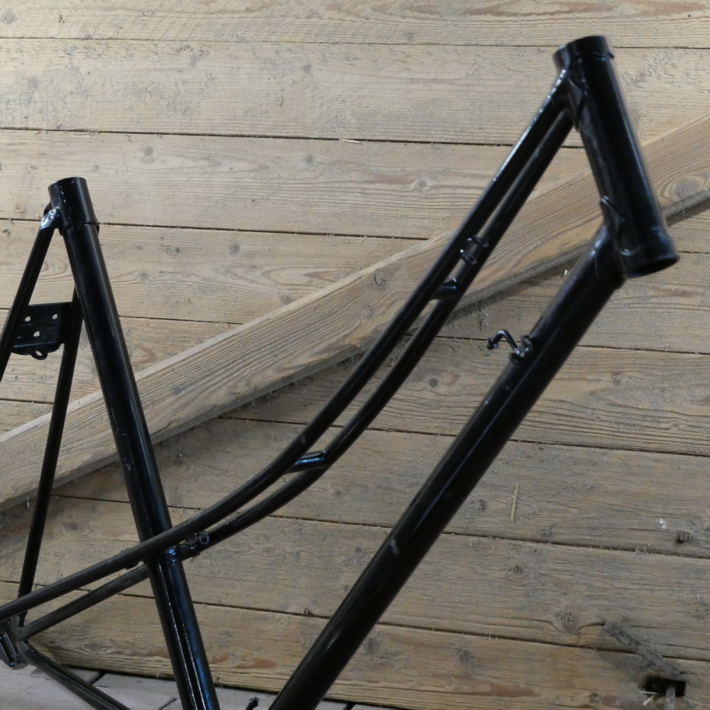 Fahrradrahmen für Tourenrad, Damen, 28 Zoll, Stahl, 80er J., schwarz, Rahmenhöhe 52cm, Einbaumaß ca. 126mm, für Innenlager BSA, Steuerrohr Durchmesser 30mm, Länge 140mm, Rahmennummer: KI29216, alte Neuware mit leichten Lagerungsspuren, Zustand gemäß Fotos