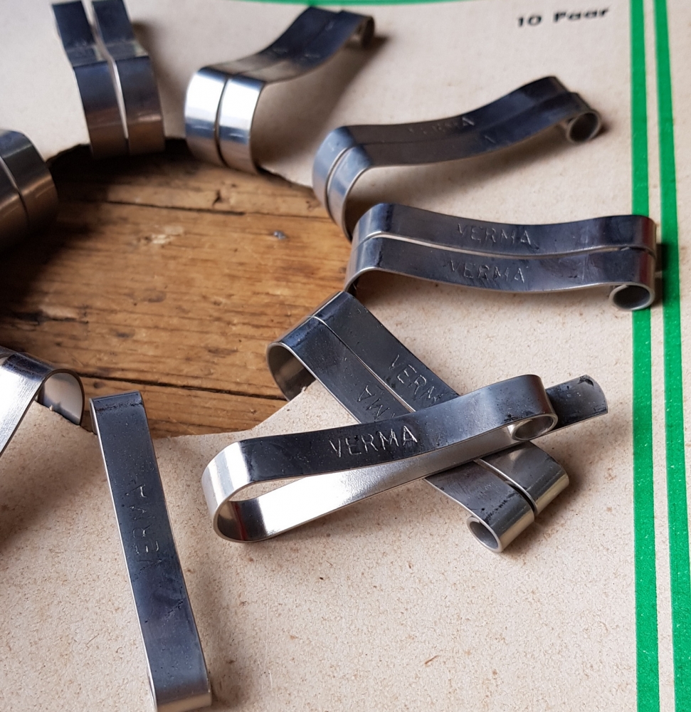 Hosenklammern Display VERMA mit 10 Satz !! Hosenspangen in Standardausführung 30-60er Jahre, orig. NOS. Diese schönen ca. DIN A4 großen Original Displays stammen aus altem Händlerbestand.