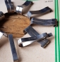 Wer hier zuschlägt, hat 10 Paar Hosenklammern an der Wand und muss bestimmt nie mehr lange suchen. Dekorativ in jeder Werkstatt oder Vitrine.